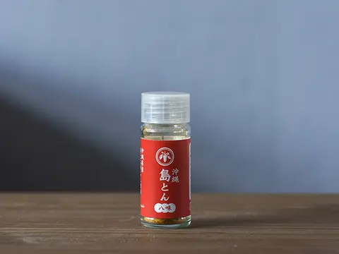 島とんがらしと7種類の食材・スパイスをブレンドしました。手作りの陳皮に本部町伊豆味産のカーブチーとたんかんを使用し、香り・辛味ともに最高の八味を作りました。