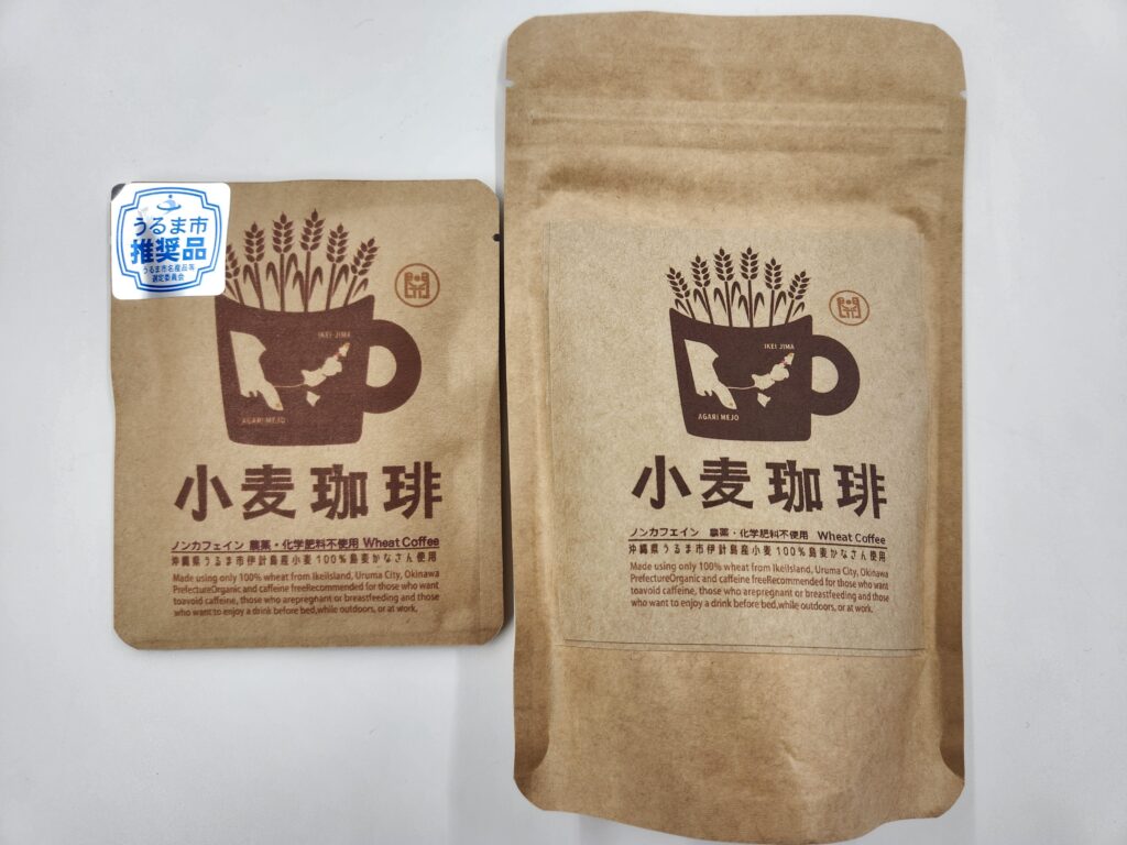 農薬・化学肥料不使用の沖縄県産小麦「島麦かなさん」(伊計島産 100%)をじ っくり焙 煎し 、コーヒーの風味を再現。完全ノンカフェインで妊娠中や健康志向の方に最適。売上の一部を伊計島に還元し 、麦の香ばしさと深い味わいで癒しの時間をお届けします。
