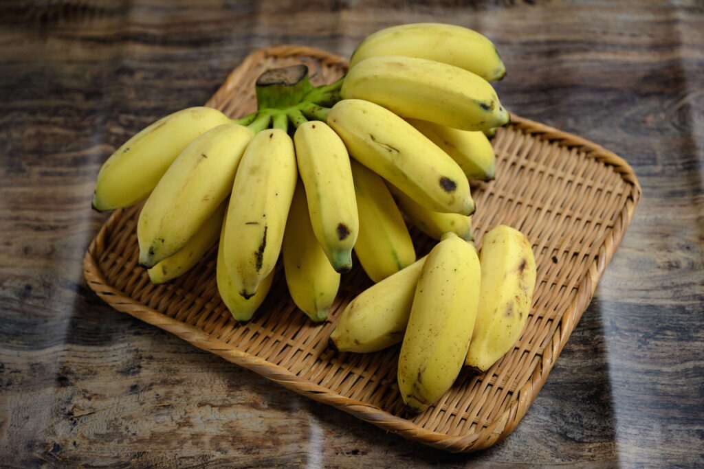 近年うるま市で生産者が増えたバナナ。中でもアップルバナナは甘さの中にほのかな酸味があり、もちっとした食感に人気が集まっています。果実が黄色く皮が少し黒くなってきたら食べごろです。