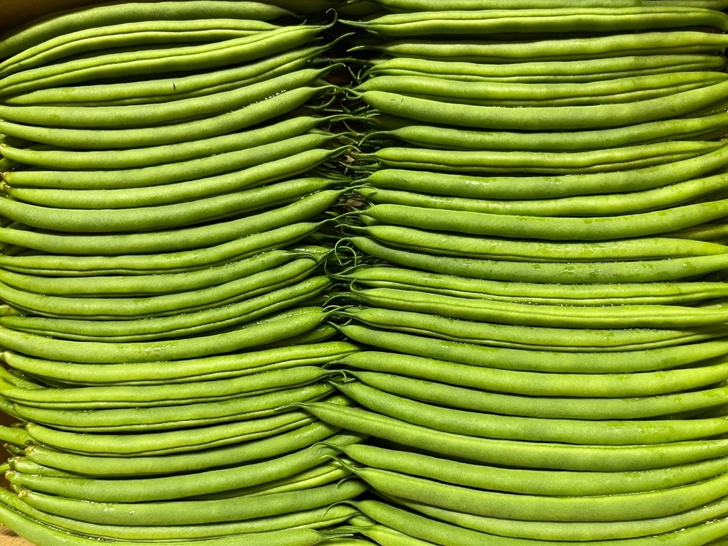 平成23年に県農林水産戦略品目の拠点産地として認定されたうるま市のさやいんげん。県外流通が少ない冬場を生産最盛期としており、全国へ出荷されています。緑色が濃くみずみずしくて筋が少ないことが特徴で、ビタミンB群、カロテンや食物繊維、ミネラル類もバランスよく含まれており、非常に栄養価の高い緑黄色野菜です。